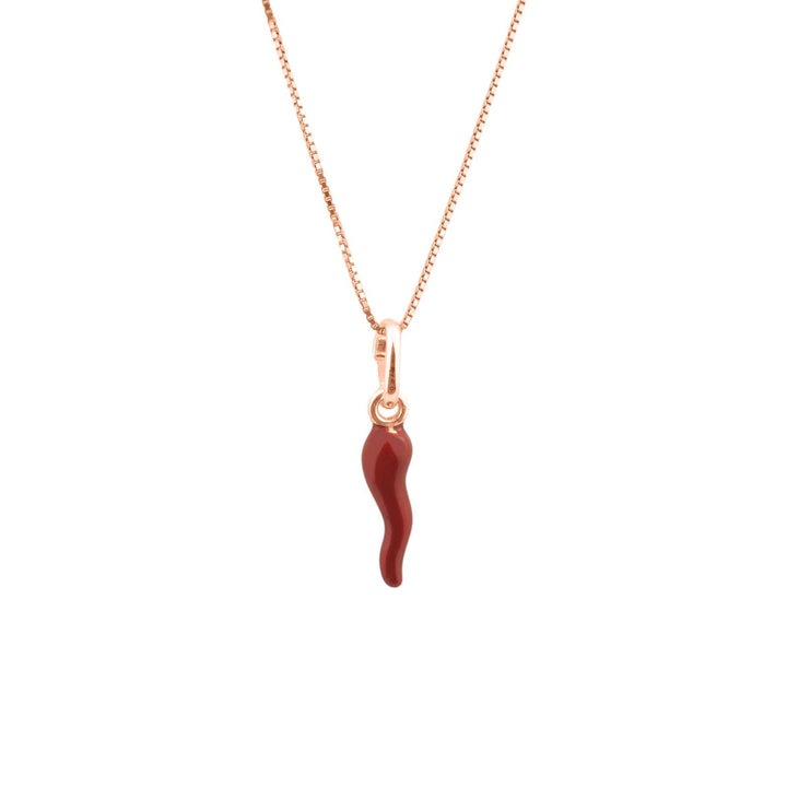 This necklace with a red burgundy enameled horn is ideal for those who desire an elegant and meaningful accessory, perfect for bringing luck and style. It is a special gift for those who appreciate traditional symbols reinterpreted in a modern key.